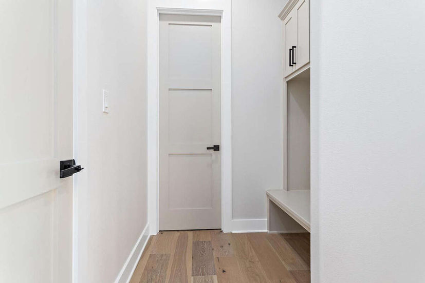As you “step” inside this modern farmhouse plan, the foyer provides a 10-foot ceiling height and has a small space for decorating to create an inviting front entry. From there the living room reveals an open floor concept with the connecting kitchen and dining area. The living room also features a vaulted ceiling, giving extra height to the space with the warming fireplace and shelving storage adding to the vibe of the room. Entry into the adjoining office is just behind barn doors and the room presents a wonderful amount of space to work, study, or to even re-purpose as a playroom for the children. The kitchen features a center island, a walk-in pantry, and plenty of storage. As an added bonus, the adjoining dining area presents sufficient space for a 6-8 seat table.